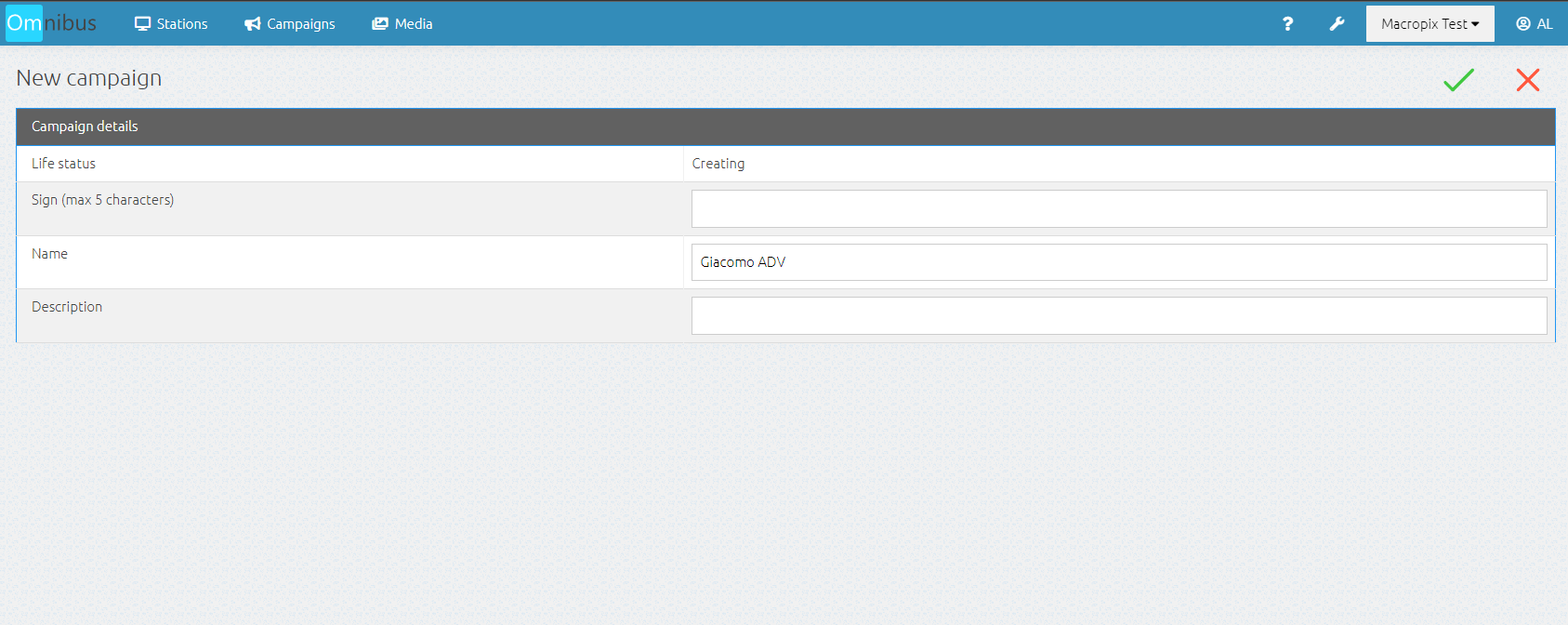 Then enter the Campaigns menu, click the “+” button, and assign a name and initials.
