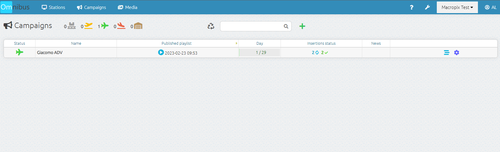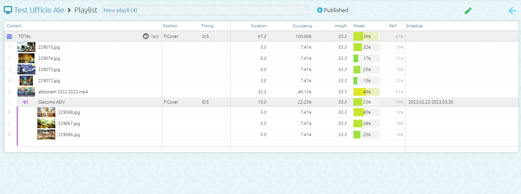 By entering the playlist currently running, you can verify that the campaign has been correctly inserted by the system.
