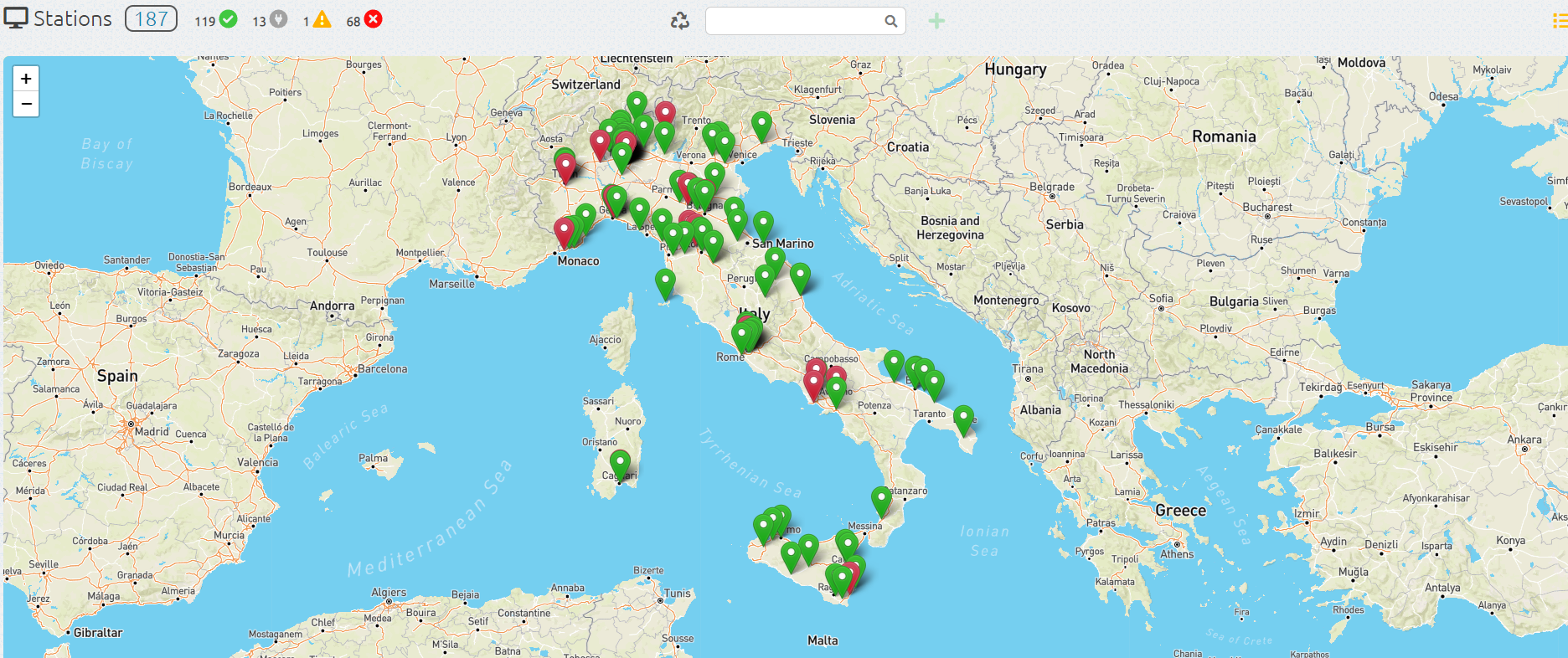 By clicking on the image you can view your stations on a map, provided that the longitude and latitude have been entered in the general information of each station.