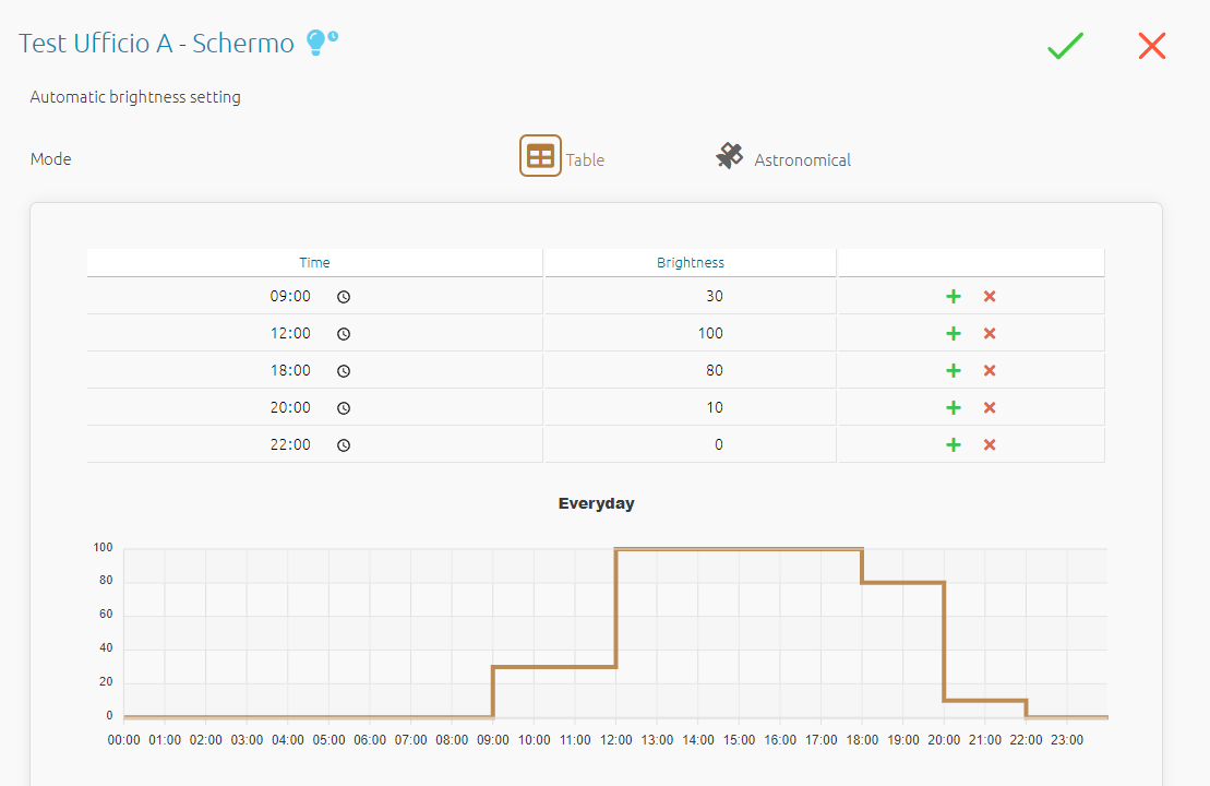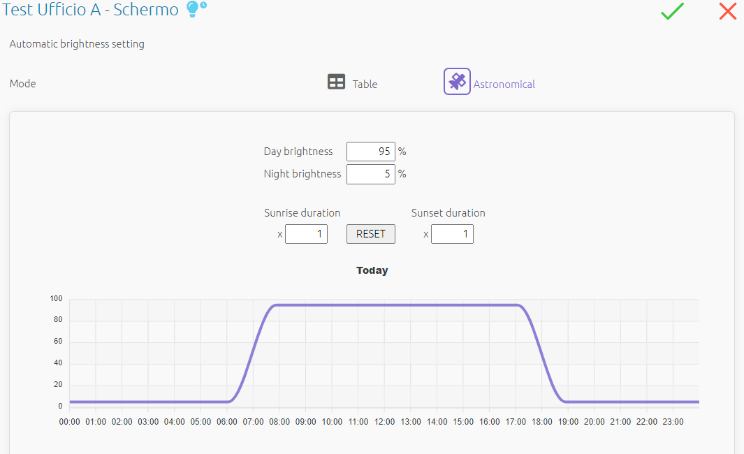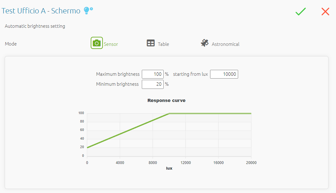 Sensor: automatic control via an environmental sensor; visible and can be activated only if a sensor is installed.