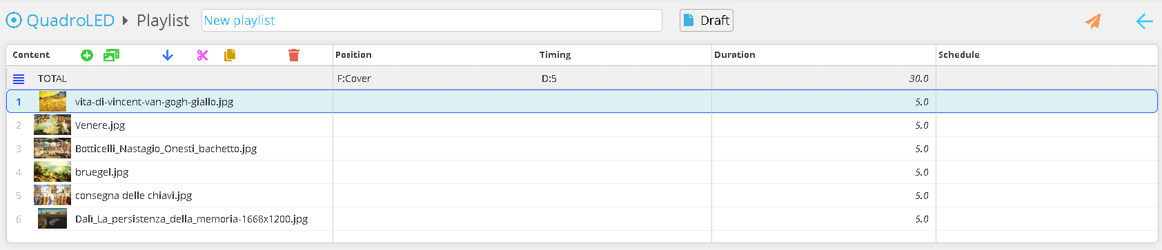 You can now reorder the contents, duplicate them, or delete them. Once all changes have been completed, you can publish the playlist to the station using