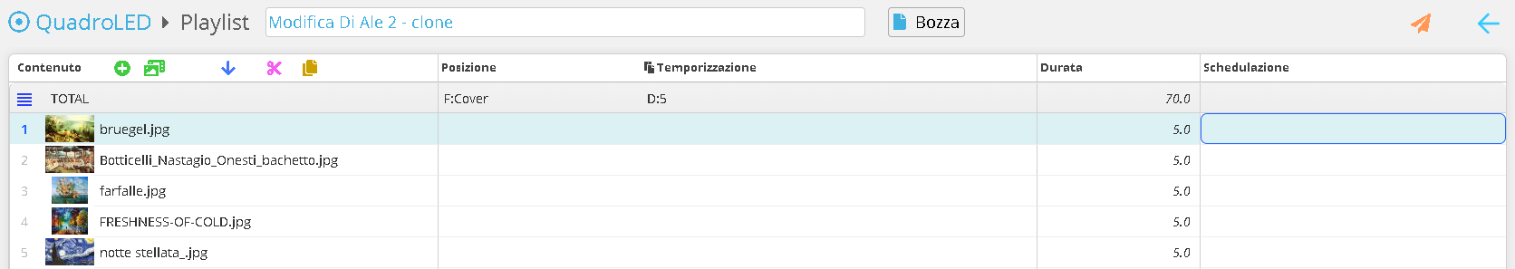 Per ogni media è possibile impostare una schedulazione dedicata, accedendo al menù con un doppio click sulla colonna "schedulazione" del media. E' possibile anche impostare una schedulazione generale sul "TOTAL".
